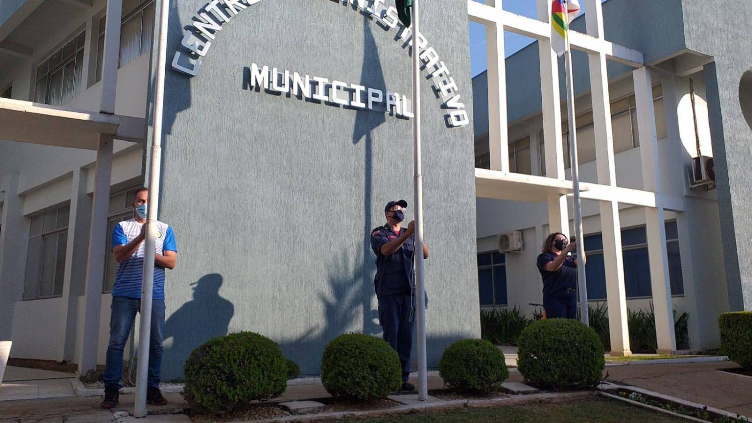 Além da companheira Jéssica, os companheiros Igor Schosler, Odair Henchen e Stéfani da Silva também estiveram presentes para acompanhar o arriamento das bandeiras.